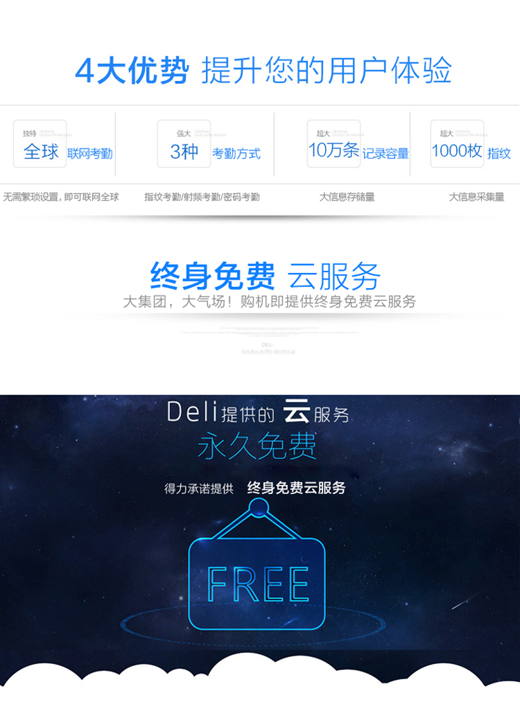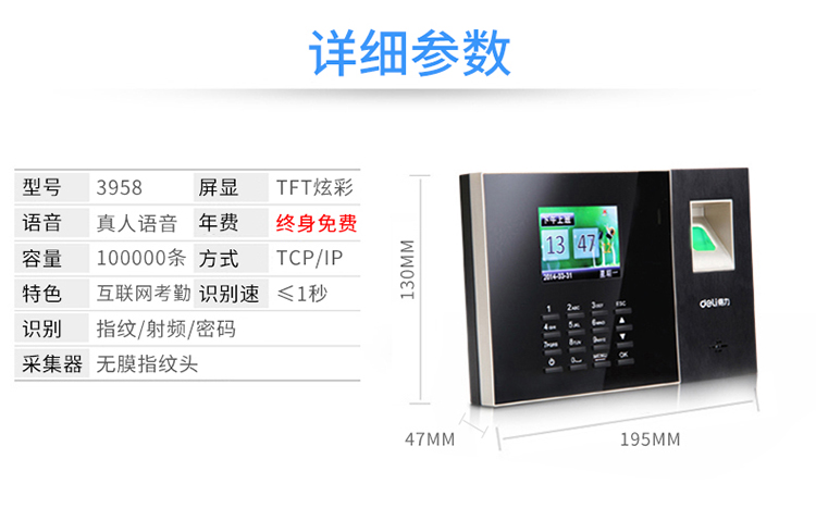 得力 3958 智能互联网考勤机得力(deli)3958 智能互联网考勤机 指纹/ID射频卡双模打卡机 异地/分店考勤