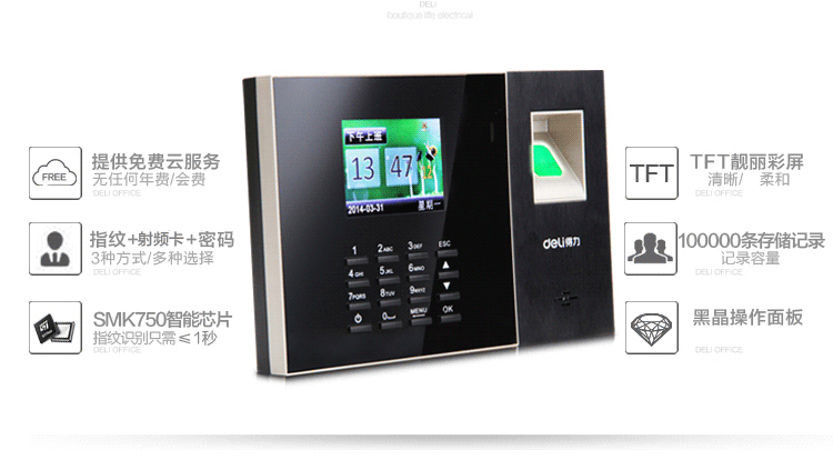 得力(deli)3958 智能互联网考勤机 双模打卡机